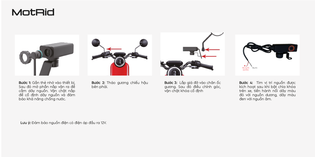 MotRid là một thương hiệu phụ kiện xe hơi & xe máy đang mở rộng sang camera hành trình với nhiều mẫu khác nhau dành cho cả ô tô và xe máy — như mẫu MD11 cho xe máy. Các sản phẩm của MotRid có giá tầm trung, trang bị tính năng khá đầy đủ so với mức giá và hướng đến người dùng phổ thông.